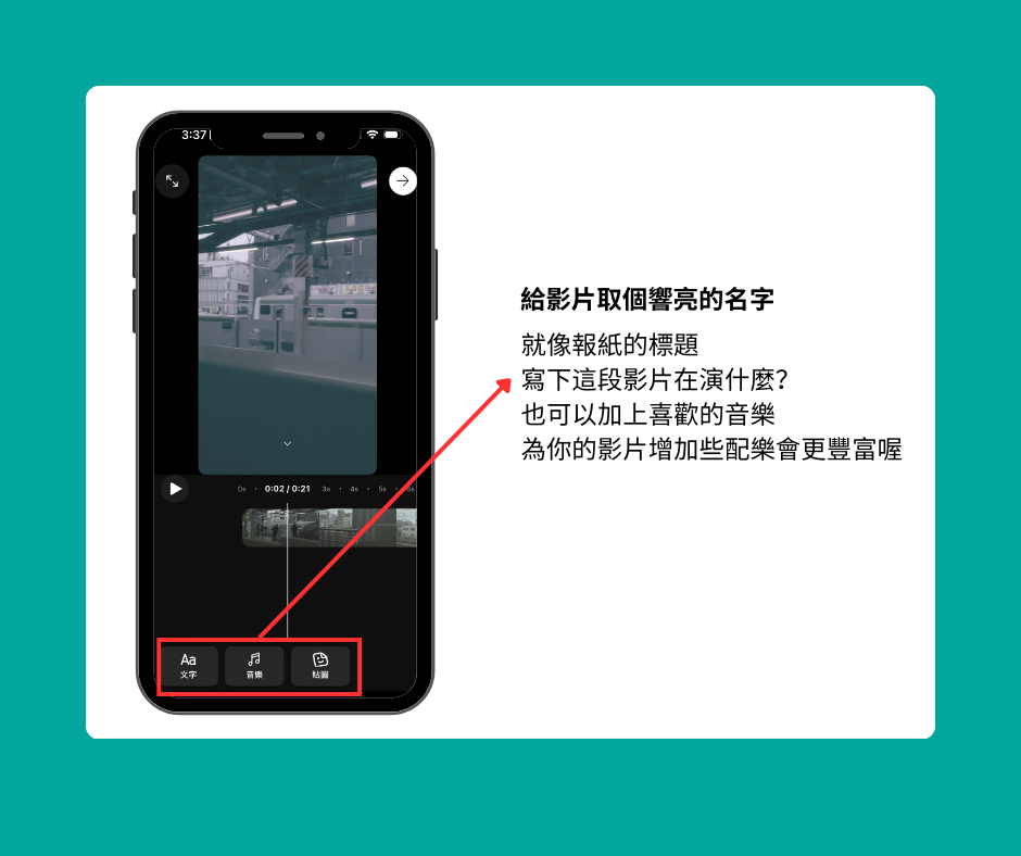 可以加上喜歡的音樂:為你的影片增加些配樂會更豐富喔