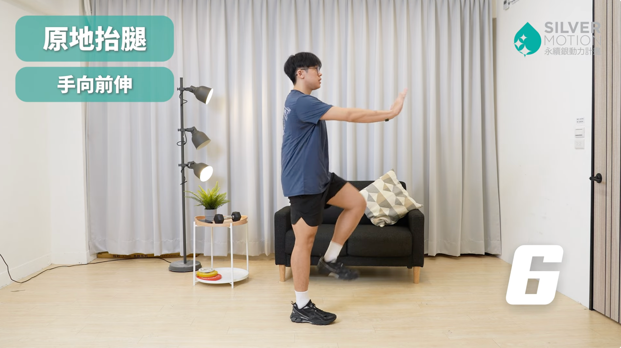 做好準備後,讓我們進入核心的有氧律動。最推薦的方式就是「原地踏步」:保持背部挺直,雙手自然隨節奏擺動。我們不需要追求快速度,最重要的關鍵在於「規律」與「持續」。運動時,如果您感覺身體微微出汗、呼吸比平常稍微喘一點,但還能跟身旁的朋友正常說話,這就是最適合您的訓練強度。透過這種規律的律動,能強化心臟收縮力,讓您未來在散步或爬樓梯時感到更加輕盈。